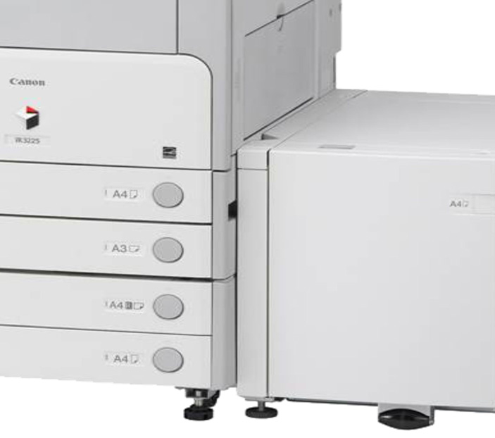 Paper Capacity Standard: 550 Sheets x 2 cassettes (1100 sheets); Multi Stack Bypass: 50 sheets (80gsm); Optional: 550 sheets x 2 cassettes (1100 sheets); Side paper deck: 2700 sheets; Max paper capacity: 4950 sheets